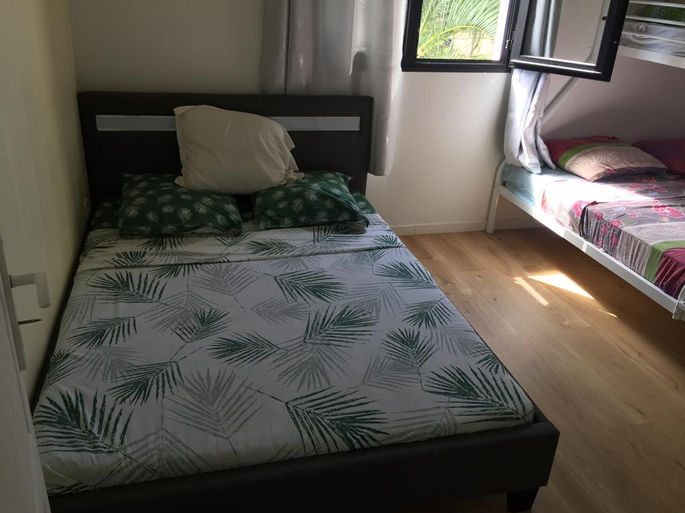 Ce logement accepte jusqu'à 9 personnes; 2 chambres dont 1 avec 1 lit double et la deuxième chambre avec 2 lits double et 1 lit simple superposé - mais on peut rajouter 1 lit BB Gratuitement